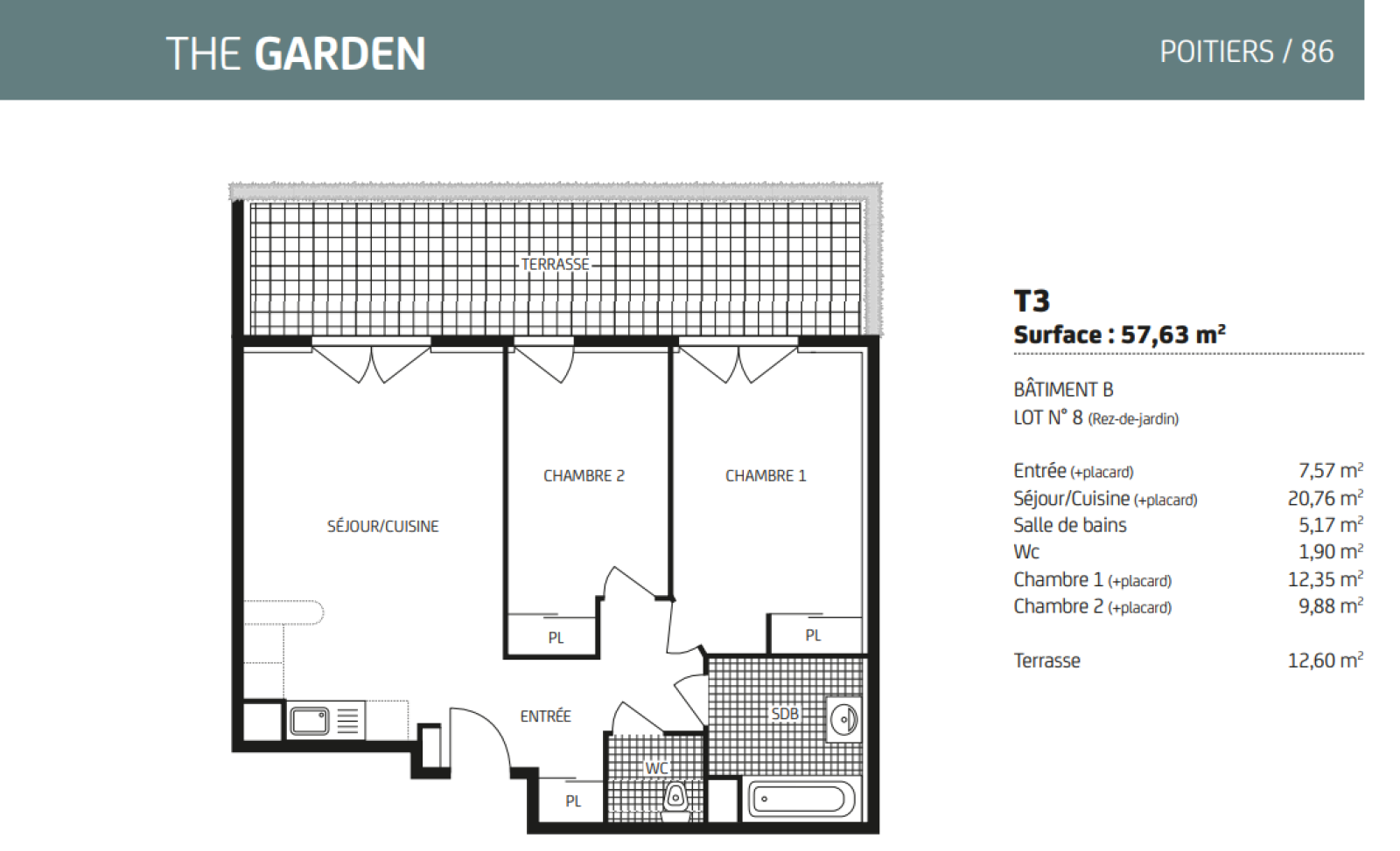 Appartement 3 pièce(s) 2 chambre(s) 58 m²